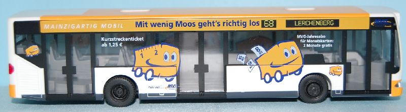 Betrieb: MVG MB Citaro, Mobilix: MAINZIGARTIG MOBIL (Mit wenig Moos geht´s richtig los) Hersteller: Rietze 62680