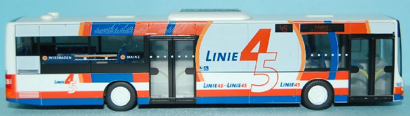 Betrieb: ESWE MAN Lions City, Beschriftung: ESWE Linie 45 (Zielfilm “45 Mainz Hbf”) Hersteller: Rietze 66298