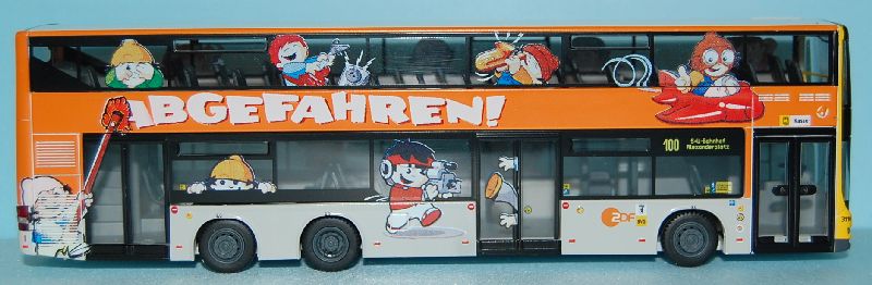 Betrieb: BVB Berlin NEOMANN A39 DD, mit Mainzer Werbung “Abgefahren ZDF” Hersteller: Rietze 54142