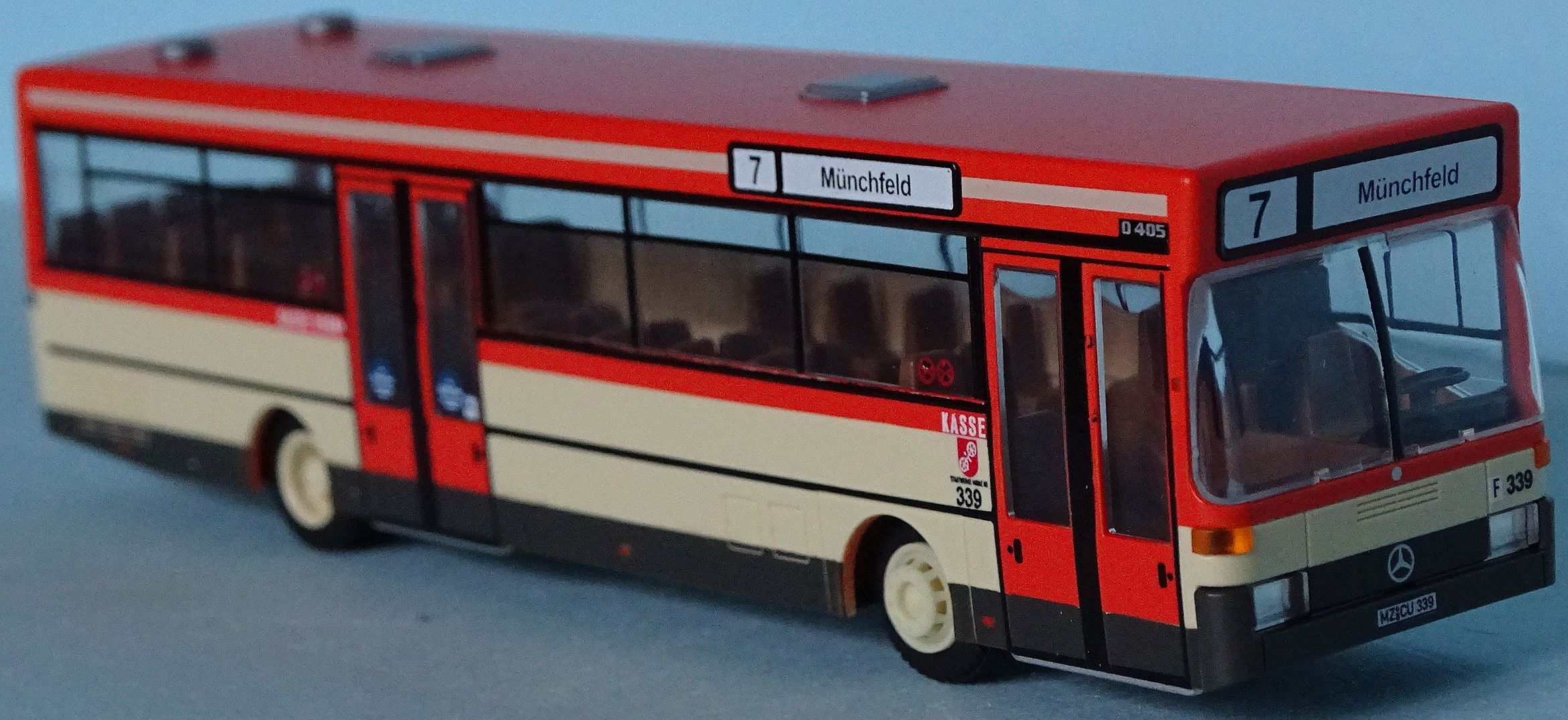 Betrieb: MVG MB O 405, Wagennummer “339”, Zielfilm “7 Münchfeld” Hersteller: Rietze (Sondermodell, Auflage 150 St.) (2017)
